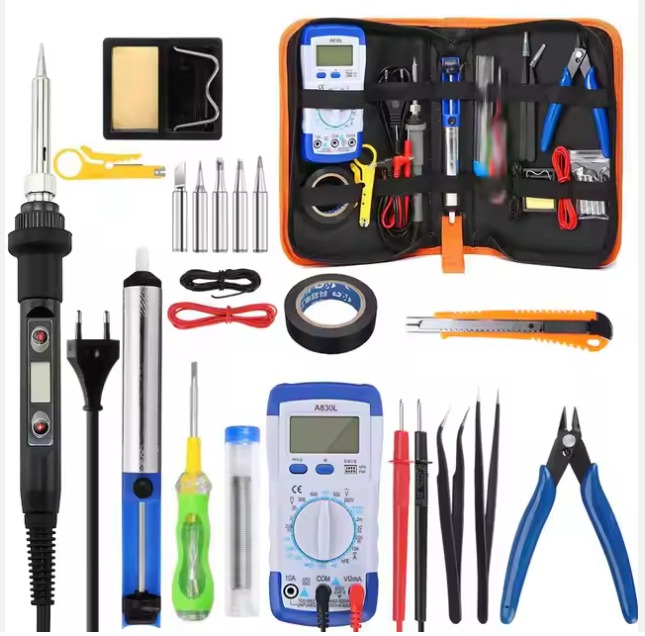 1. Digital Soldering Iron: The kit likely includes a digital soldering iron with adjustable temperature settings. This allows you to set the temperature according to the requirements of different soldering projects.