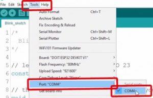 2. Go to Tools > Port and select a COM port available.