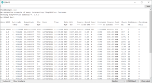 Serial.println(F("Sats HDOP Latitude Longitude Fix Date Time Date Alt Course Speed Card Distance Course Card Chars Sentences Checksum"));