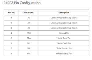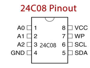 AT24C08A, 8K SERIAL EEPROM  is internally organized with 4 blocks of 256 pages of 4-bytes each. Random word addressing requires a 10 bit data word address.
