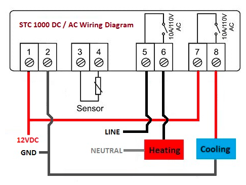 The STC-1000 12VDC/220V Temperature Controller is a self-contained heating / cooling controller that operates on 12VDC and can control either AC or DC loads of up to 10A. This unit can be used for controlling many different heating and cooling devices such as heaters, refrigerators, freezers, heat tapes, vivariums, fermentation tanks, industrial equipment and other temperature controlled systems.
